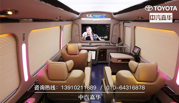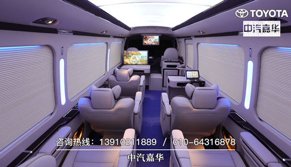 最后我们来普及一些丰田考斯特改装知识:不同改装方案的其中有些项目是高中低配通用的,比如整车车厢真皮蒙皮、整车精密阅读灯、氛围灯、地面处理、雨伞及雨伞架、水壶座、220V稳定电源等。我们只有亲身体会才能感受到丰田考斯特改装车的魅力,中汽嘉华丰田考斯特销售定制中心欢迎您随时到厂参观,24小时咨询热线:13910211889 / 010-64316878 。